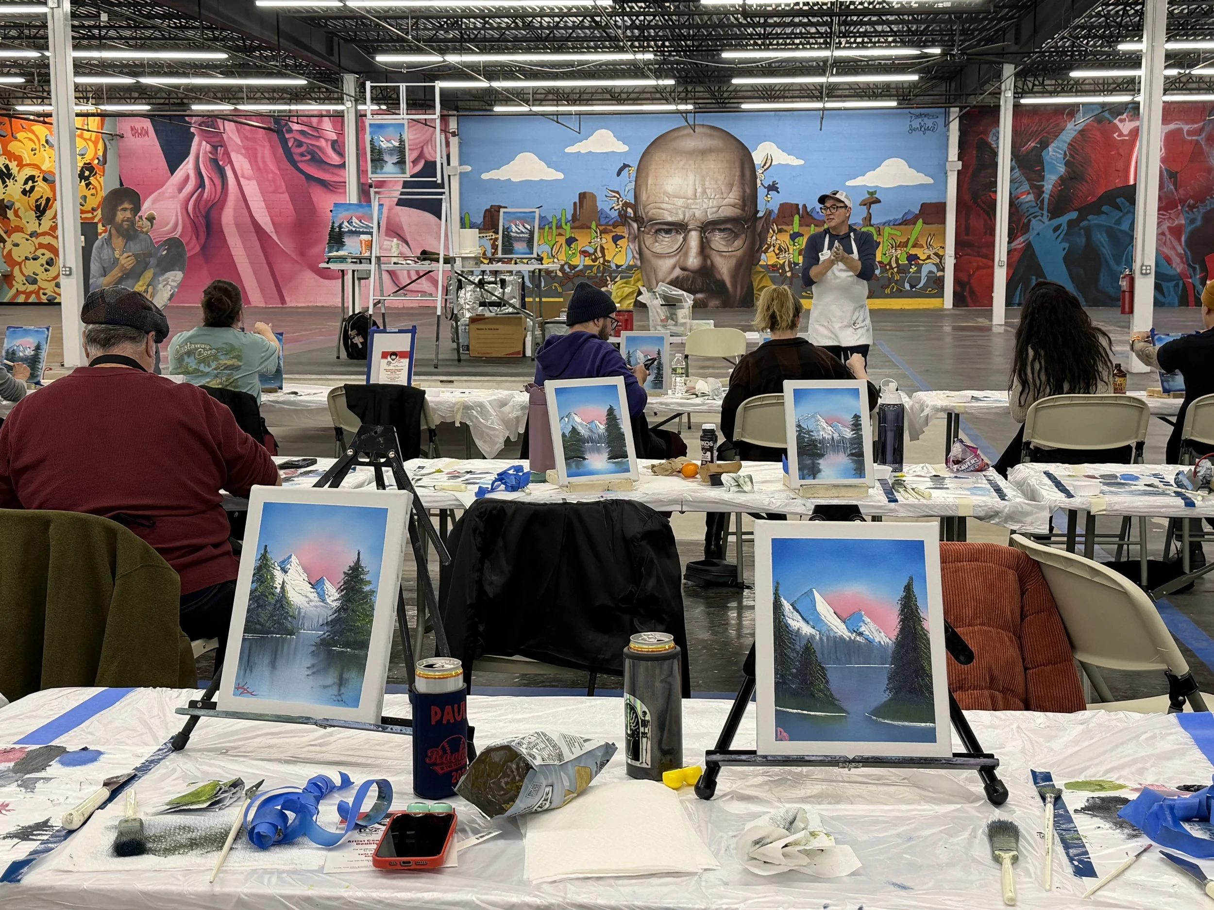 Get ready to unleash your inner Bob Ross as Certified Ross Instructors, Lauren Pantos and Wes Day, help you create your very own masterpiece. This is a premium painting experience! Students receive step-by-step instructions to complete a landscape oil painting using the tools and techniques demonstrated on the hit TV series, "The Joy of Painting" hosted by Bob Ross. Bring a beverage! Bring a friend! Bring a date! You will be amazed by the results you can achieve with a few simple colors and a few simple steps. All supplies are included.